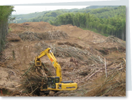 伐採→収集運搬→木材処理の一貫工事で環境保全に貢献します。